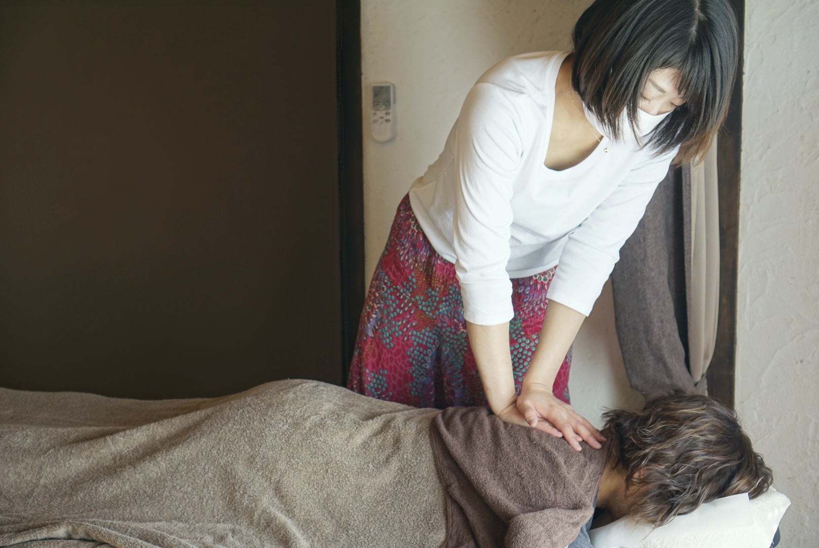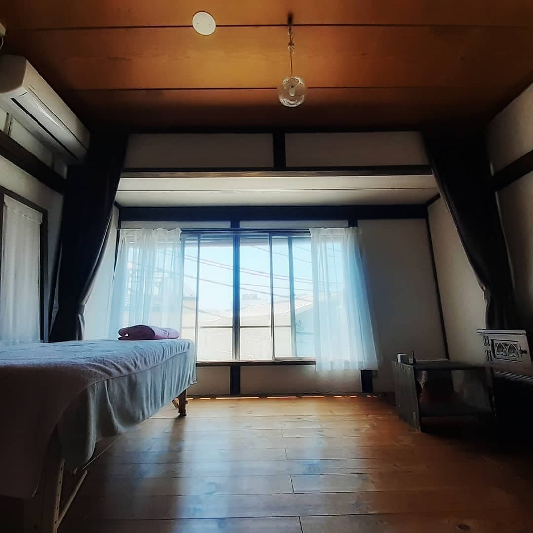 施術ベッドは折り畳めでしまえるので、ヨガマットを敷いて広々、ヨガをすることも可能です!