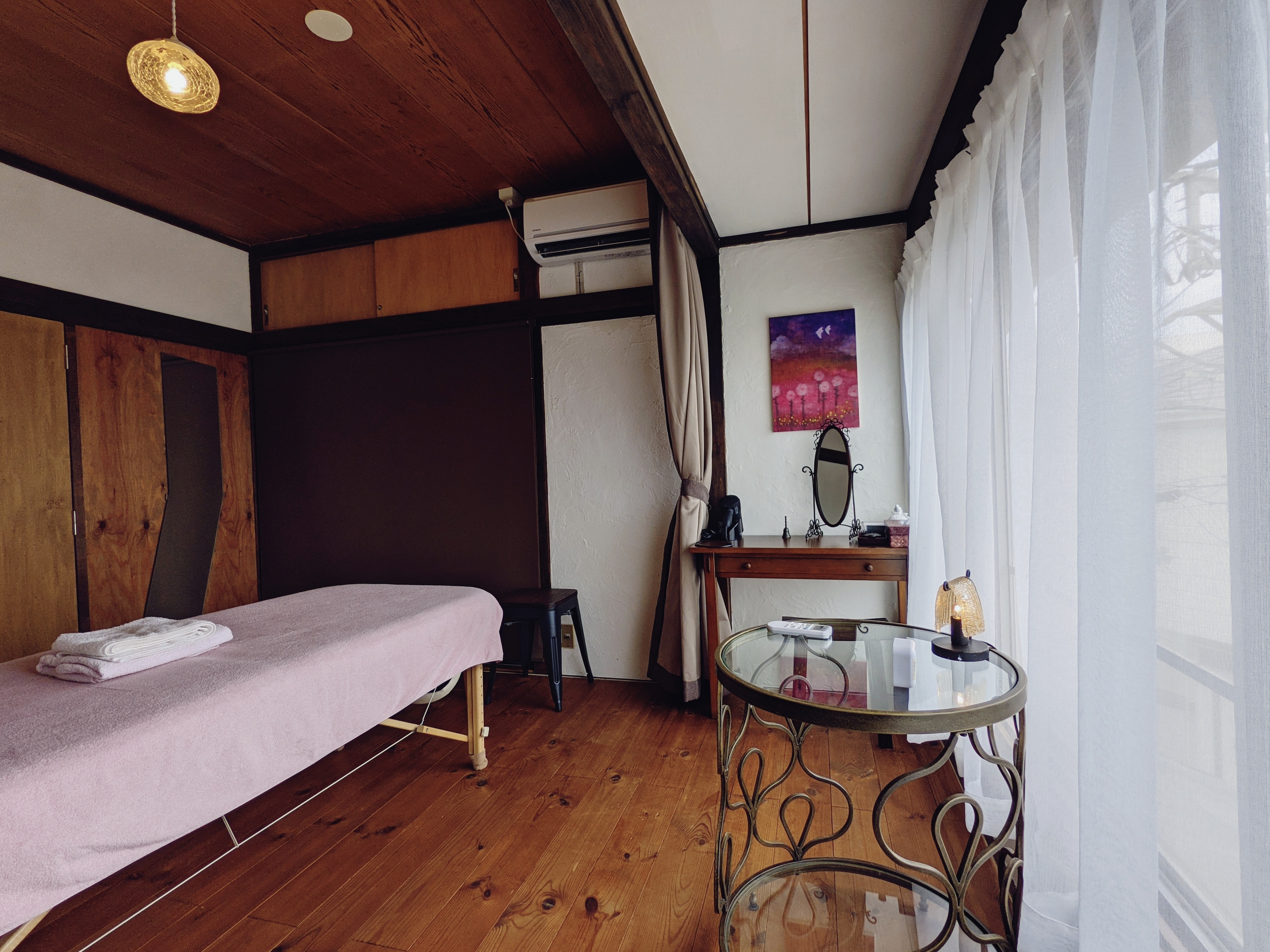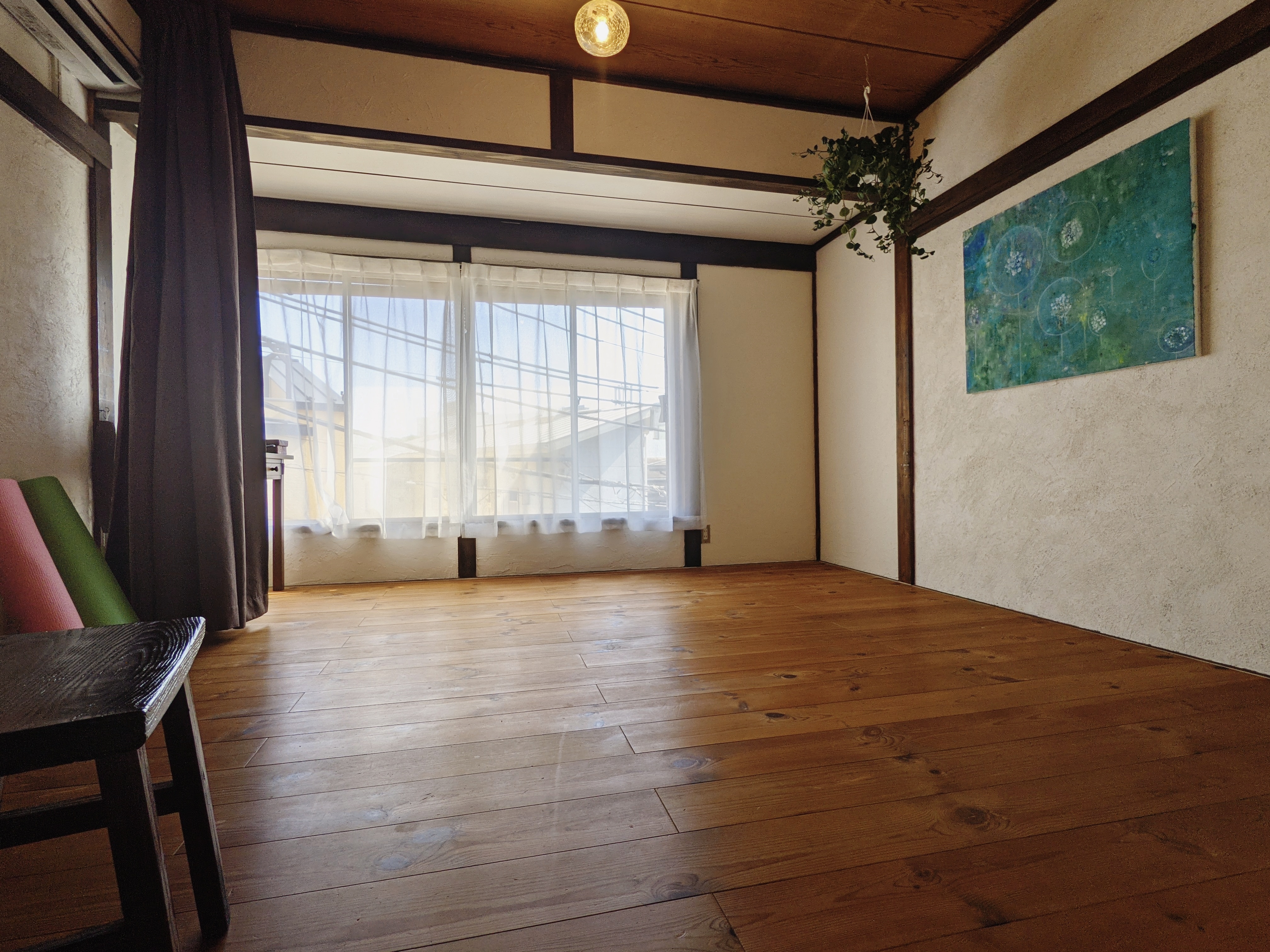 2階の8畳roomは天然の無垢の床で広々。リラクゼーションサロンとして利用したり、